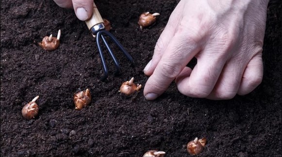 5. Töltsd fel a gödröt földdel, majd öntözd be a virághagymáid!